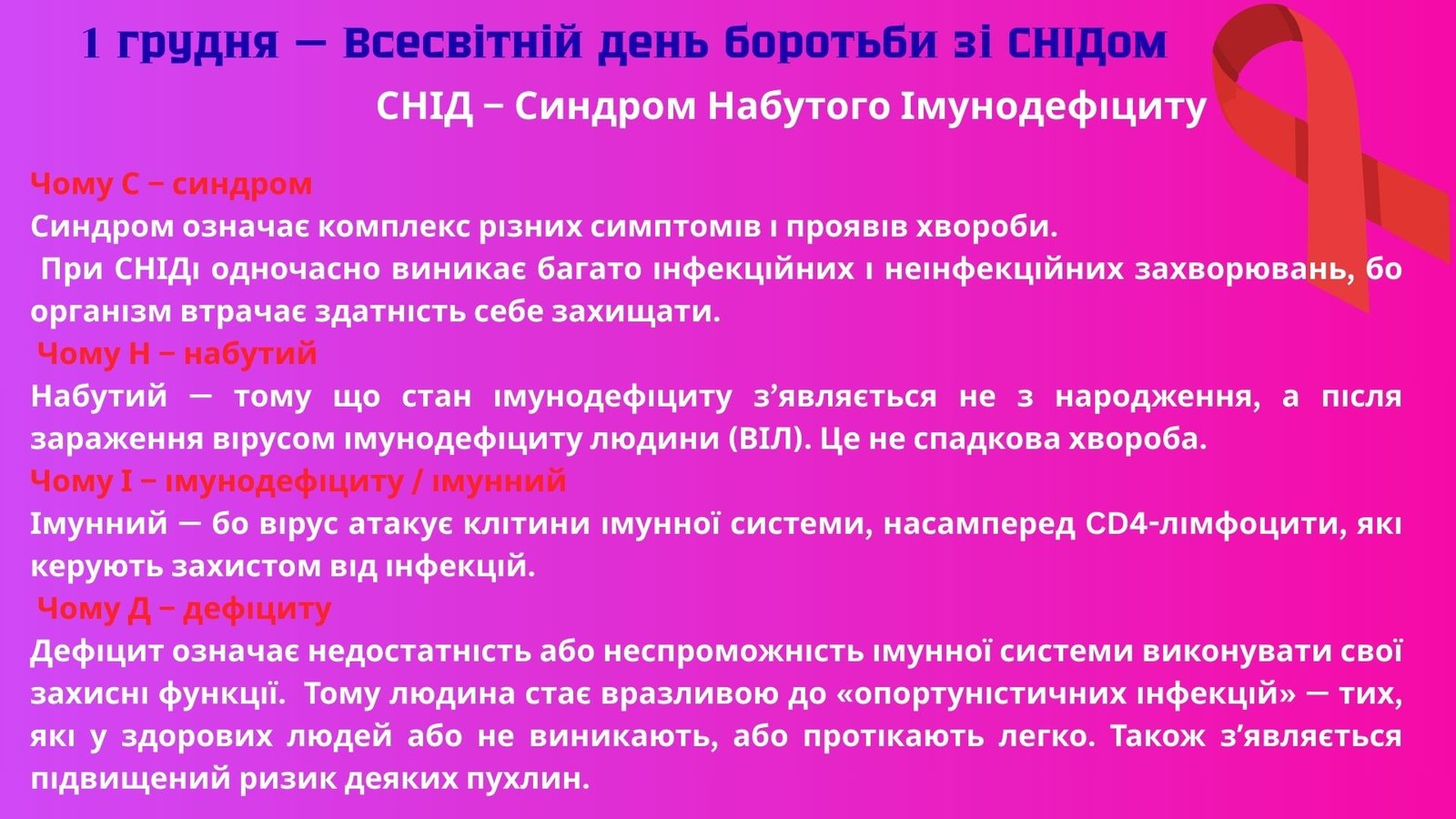 - СНІД – Синдром Набутого Імунодефіциту
