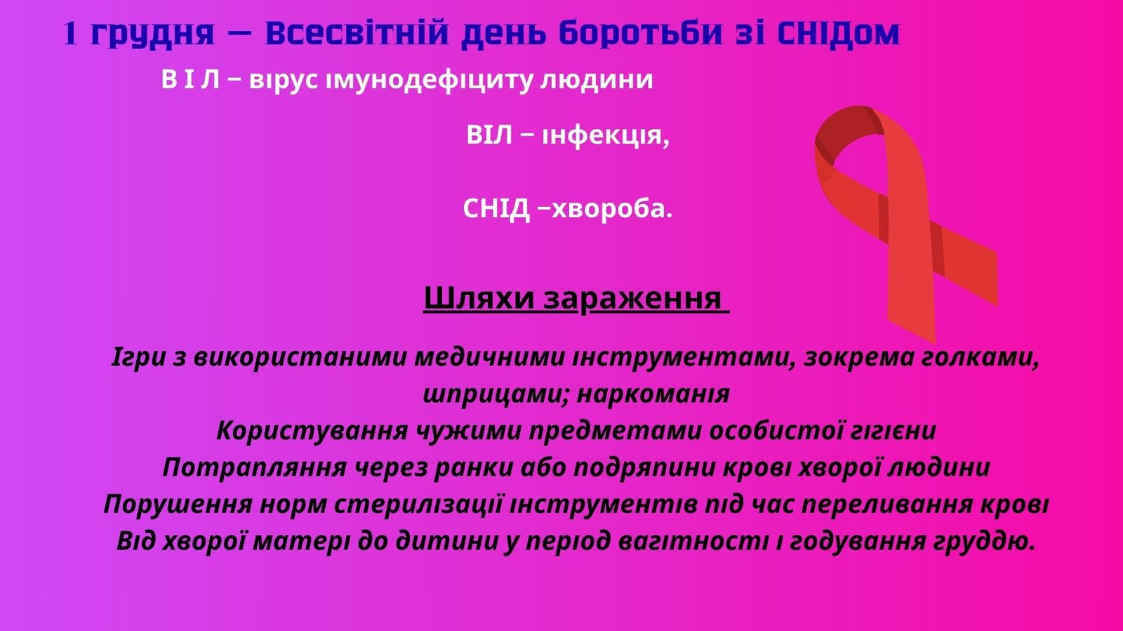 Презентація 1 грудня 2025 — Всесвітній день боротьби зі СНІДом. Міжнародна акція “16 днів проти насилля”
