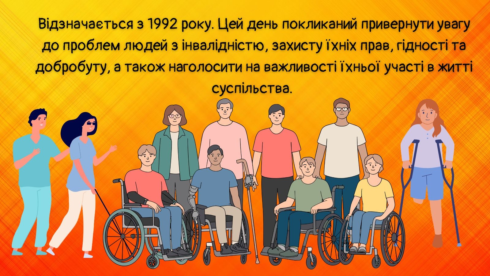 3 грудня – Міжнародний день людей з обмеженими фізичними можливостями;