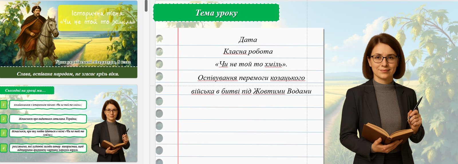 - Тема уроку та очікувані результати («Сьогодні на уроці ми…»);