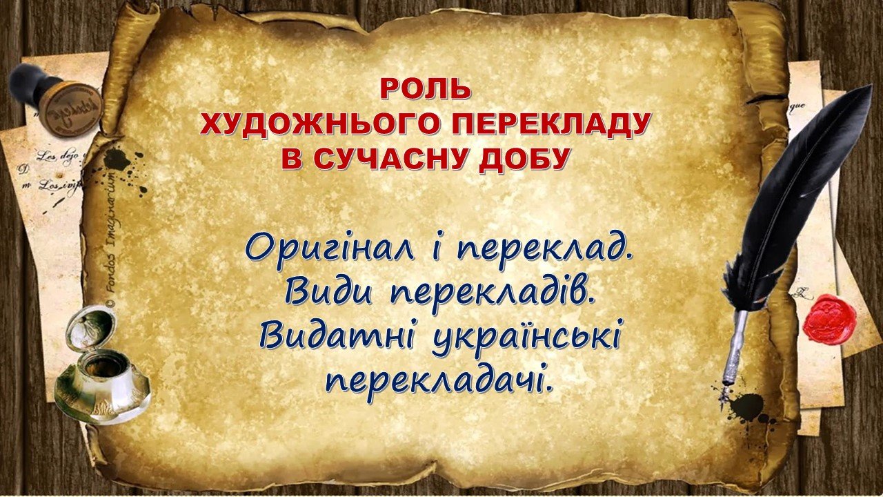 Презентація до теми «Оригінал і переклад. Види перекладів. Видатні українські перекладачі» (7 клас)