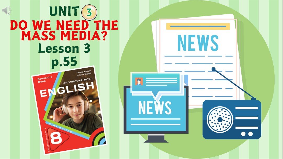 Як купити матеріал «Презентація до уроку 3 у 8 класі “Unit 3. DO WE NEED THE MASS MEDIA? Lesson 3, p.55” (до підручника Карп’юк 2025)»?