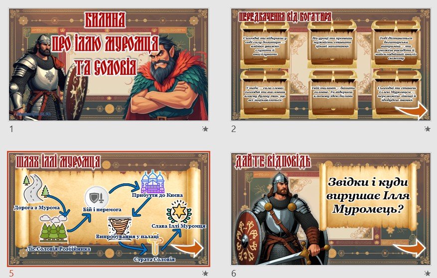 Русь, її культура та письменство. Усний народний епос. Старини (билини) «Про Іллю Муромця та Соло...