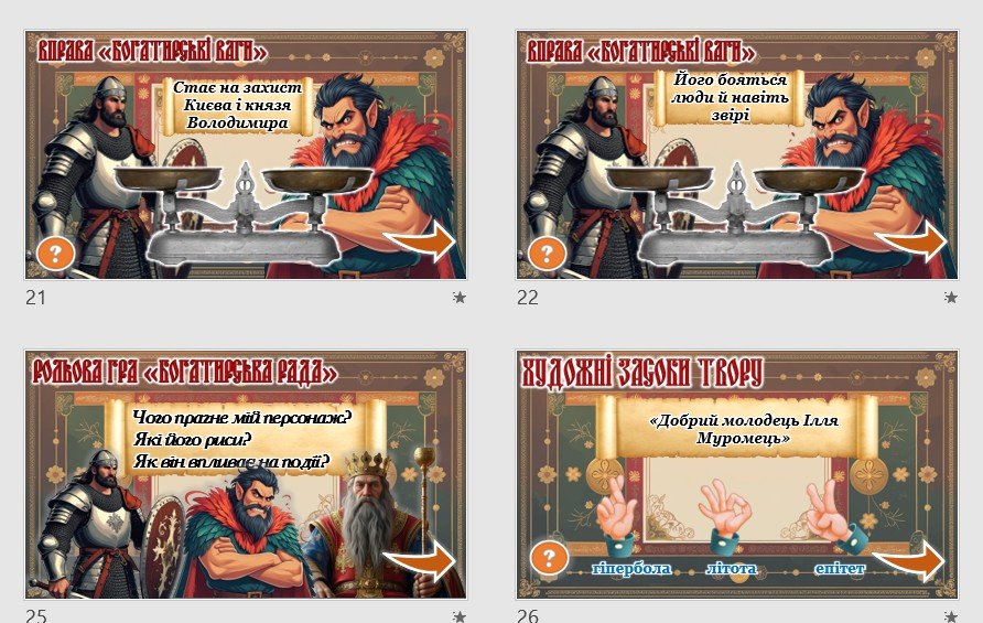 «Про Іллю Муромця та Соловія». Другорядні персонажі, їх характеристика. Мова і стильові особливос...