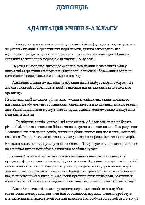 Матеріали «ПРЕЗЕНТАЦІЯ-ДОПОВІДЬ “АДАПТАЦІЯ УЧНІВ 5-А КЛАСУ”. 2025-2026 навчальний рік» будуть надіслані в електронному вигляді на вашу поштову скриньку одразу після оплати.