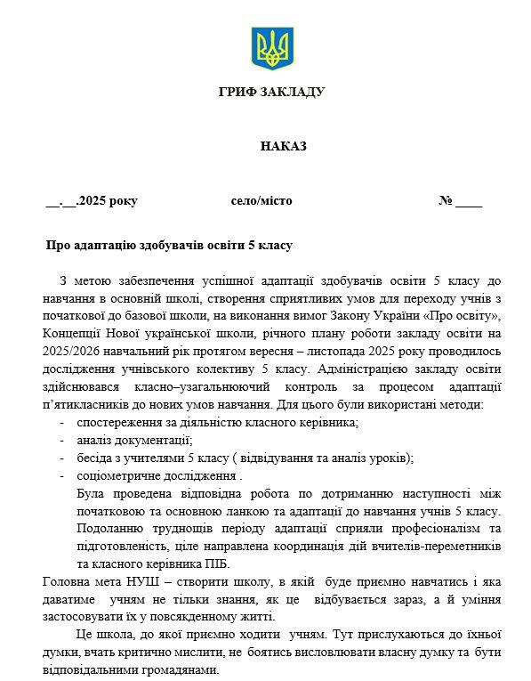 Коли я отримаю матеріал «АДАПТАЦІЯ УЧНІВ 5-А КЛАСУ. ПРЕЗЕНТАЦІЯ-ДОПОВІДЬ + НАКАЗ. 2025-2026 навчальний рік»?
