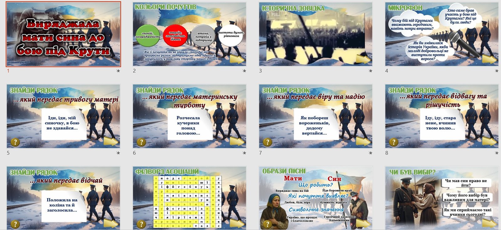 Щоб купити «Презентація історична пісня “Виряджала мати сина під Крути до бою” 8 клас НУШ», потрібно додати матеріал до кошика та оплатити замовлення.