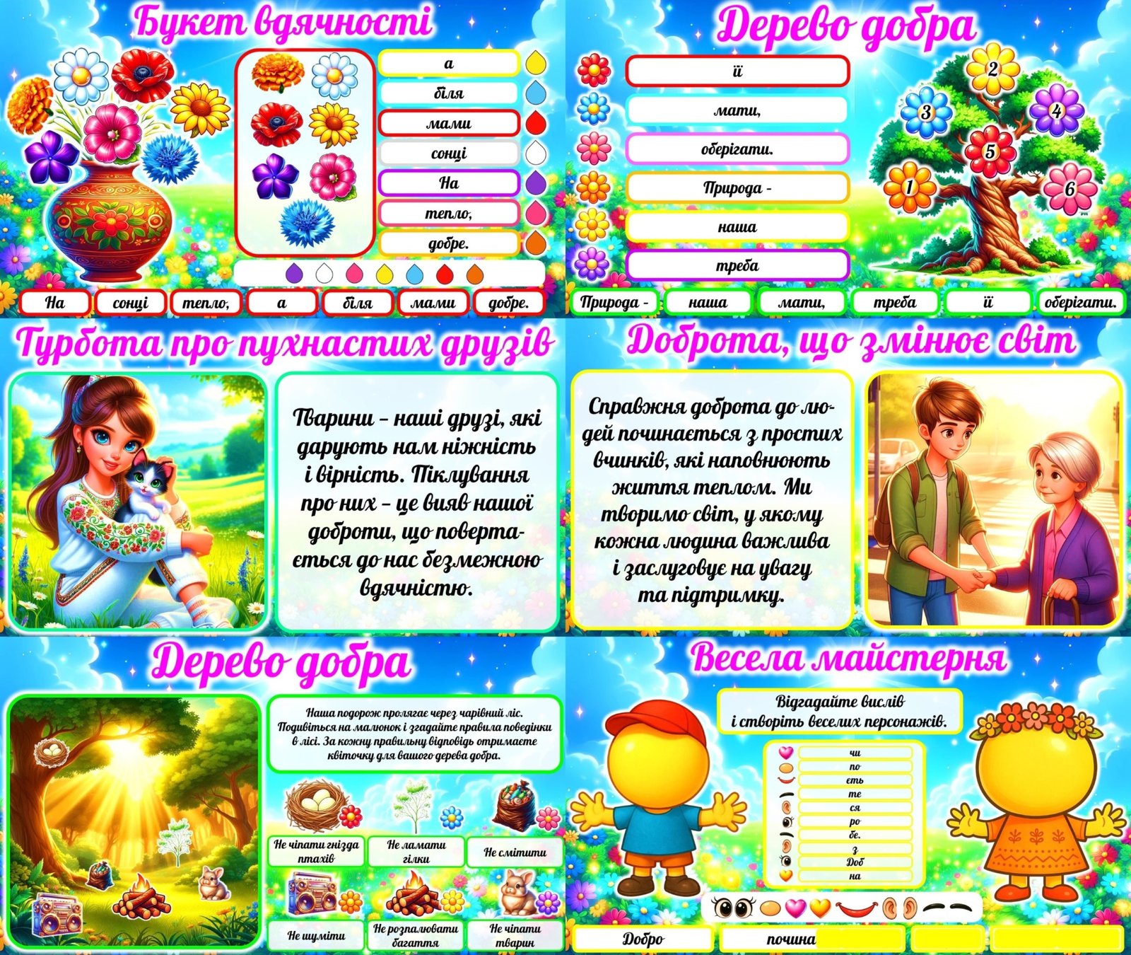 !!! ДЕНЬ ДОБРОТИ. КОЛАЖ-МЕГАРОЗМАЛЬОВКА. СКАРБНИЧКА ДОБРОТИ (колективна робота постери на 2,4,8 а...