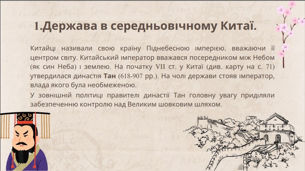 § 11.Китай та Японія в Середньовіччі. Презентація створена для учнів, які навчаються в 7 класі НУШза підручником І.Щупака та ін. “Всесвітня історія”. (Текст презентації взятий з електронної версії підручника). Дана презентація – допомога вчителю під час очного та дистанційного навчання.