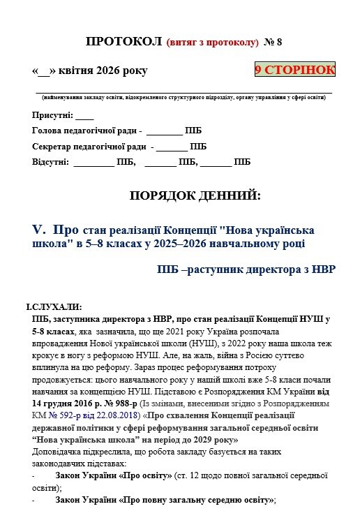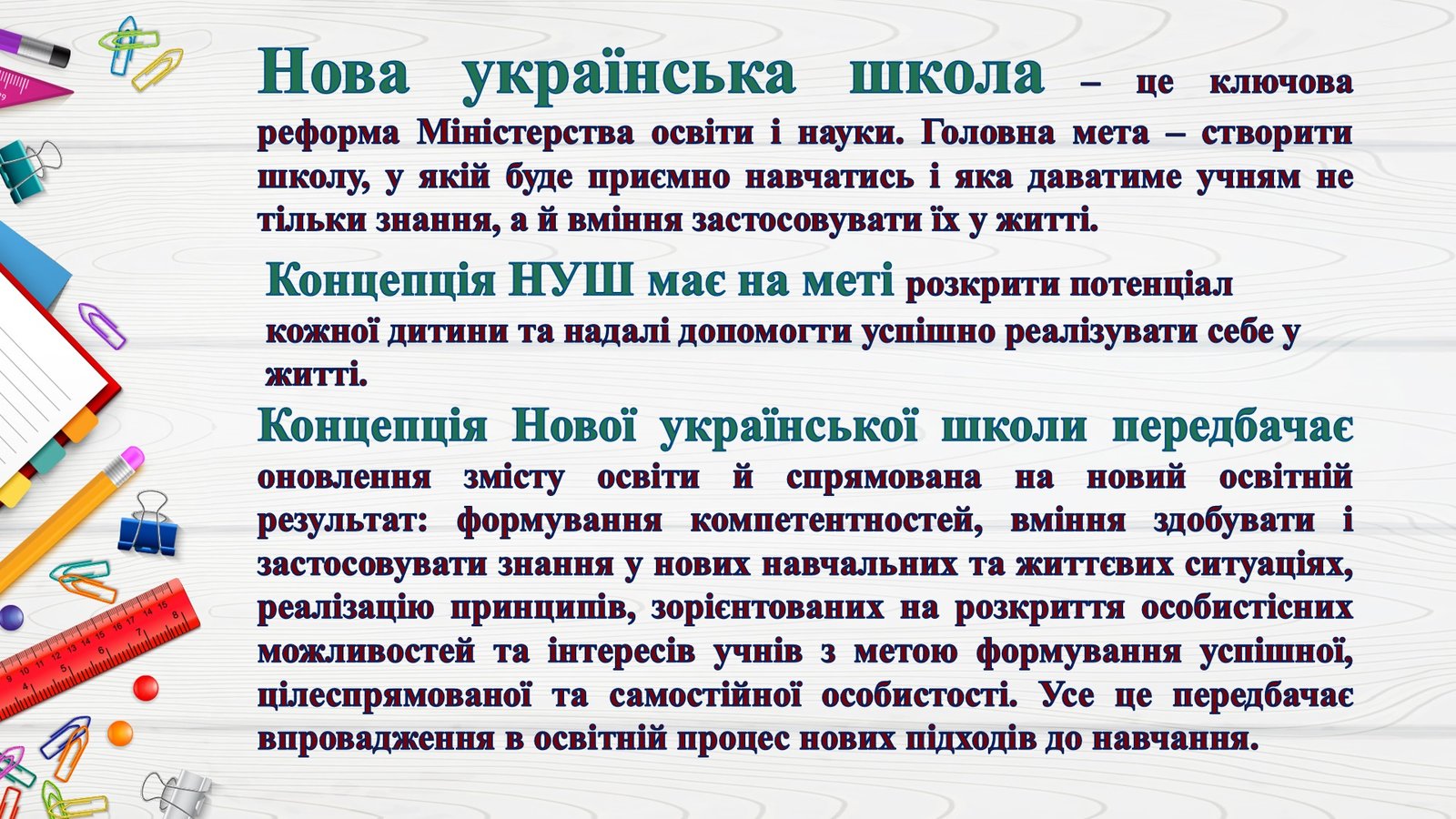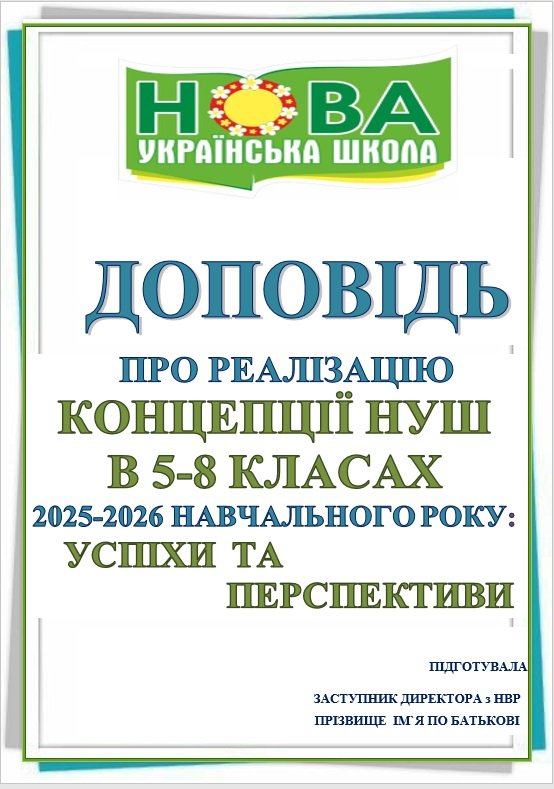 ПРЕЗЕНТАЦІЯ та ДОПОВІДЬ ДЛЯ ВИСТУПУ НА ПЕДРАДІ «ПРО РЕАЛІЗАЦІЮ КОНЦЕПЦІЇ НУШ В 5-8 КЛАСАХ: УСПІХИ ТА ПЕРСПЕКТИВИ» (52 слайди)