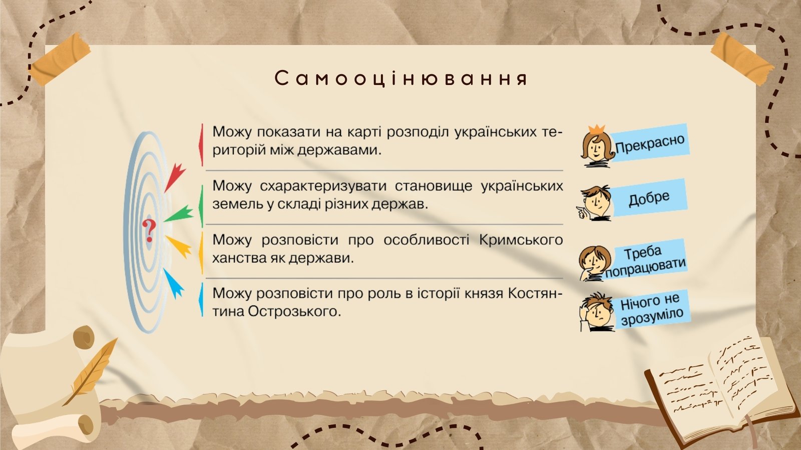 КПР історія України 8 кл. НУШ за Розділом І. УКРАЇНСЬКІ ЗЕМЛІ В XVI — ПЕРШІЙ ПОЛОВИНІ ХVІІ ст