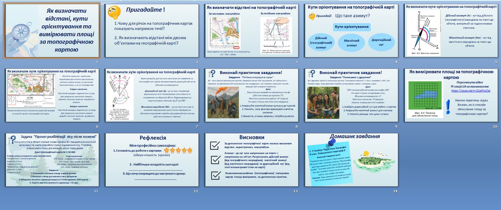 Презентація. Визначення напрямків, відстаней, площ та висот точок за топографічною картою. 8 клас...