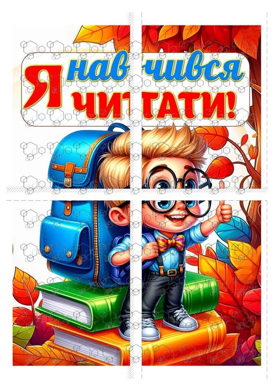 Оформлення до свята (розтяжка – кожна буква на форматі А4, постер “Я навчився читати” на 2,4,8 і 9 аркушів А4). Мінімум чорнил – максимум яскравості. Замовити i*d*e*a*l_2007@u*k*r.n*e*t (зірочки видаліть)
