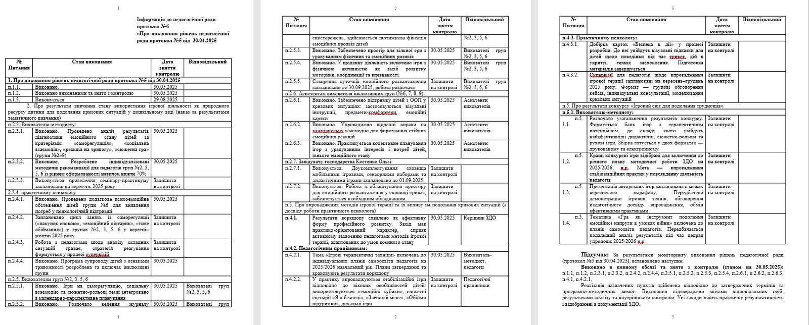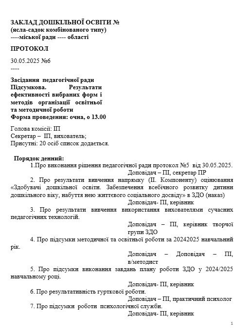 Протокол і матеріали підсумкової педагогічної ради №6 від 30.05.2025