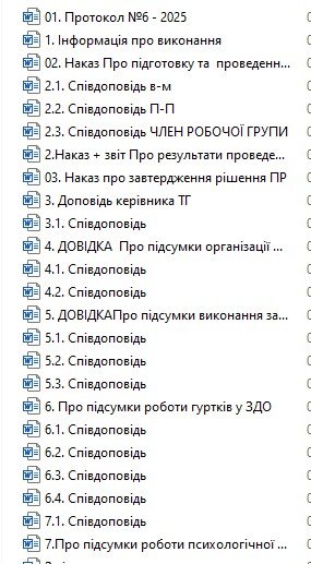 - Довідка до педагогічної ради Про підсумки виконання завдань плану роботи ЗДО у 2024/2025 навчальному році.
