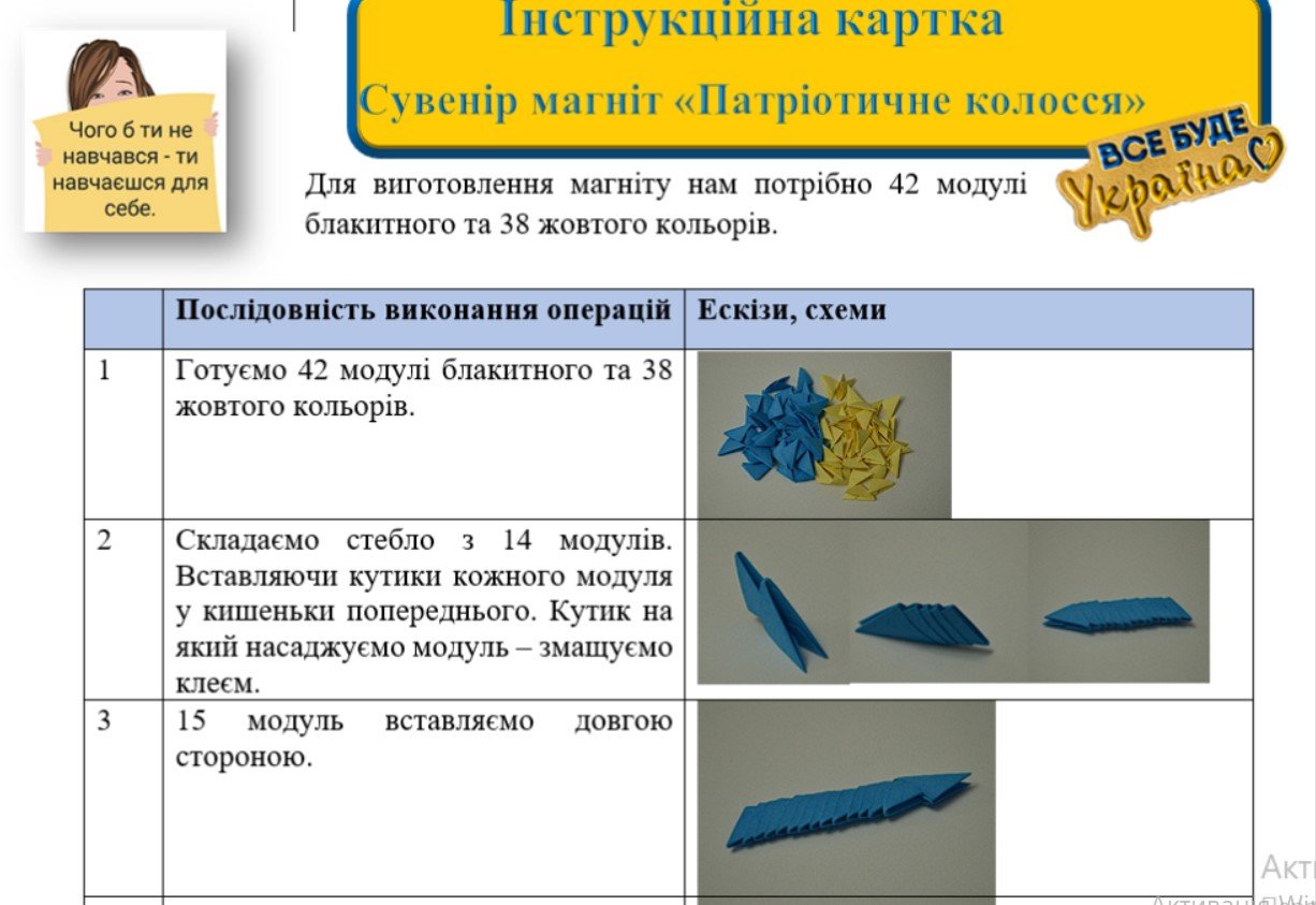 Проєкт «Патріотичний сувенір (магніт на холодильник)» 5 клас. Основна технологія: модульне орігамі. 4 уроки.