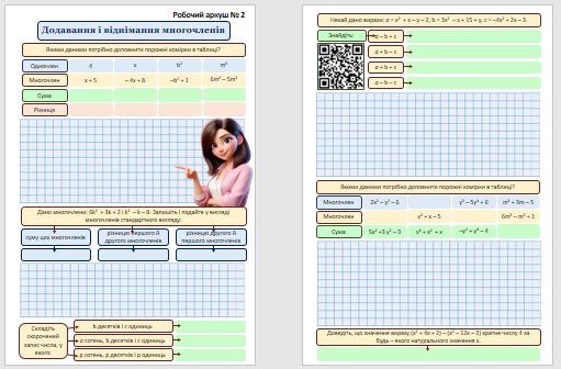 Робочі аркуші з алгебри для учнів 7 класу по темі “Многочлен та його стандартний вигляд”