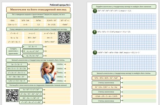 Робочі аркуші з алгебри для учнів 7 класу з теми “Тотожність. Доведення тотожностей”