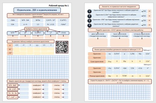 Робочі аркуші з алгебри для учнів 7 класу з теми “Тотожність. Доведення тотожностей”