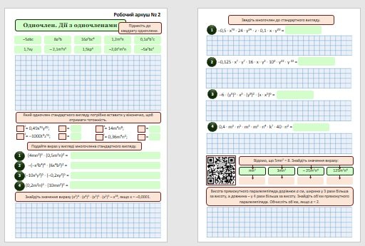 Робочі аркуші з алгебри для учнів 7 класу з теми “Степінь з натуральним показником”