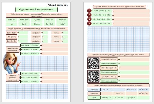 Робочі аркуші з алгебри для учнів 7 класу по темі “Многочлен та його стандартний вигляд”