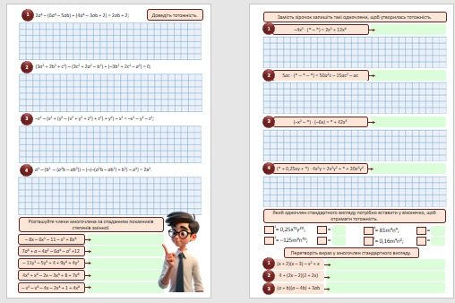 Робочі аркуші з алгебри для учнів 7 класу з теми “Тотожність. Доведення тотожностей”