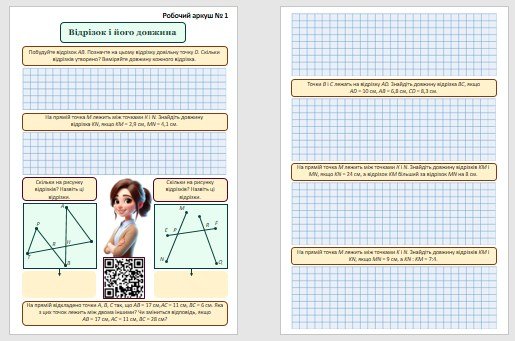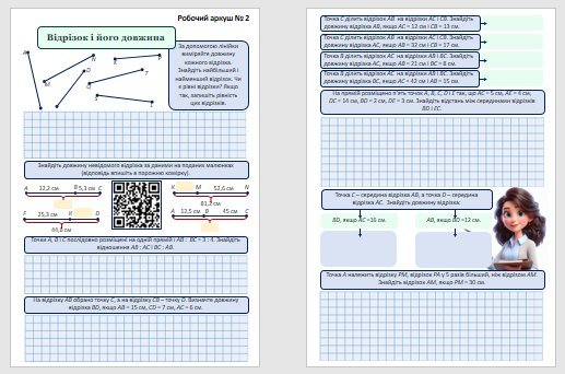 Робочі аркуші для учнів 5 класу з теми “Пряма, промінь, відрізок. Вимірювання відрізків”