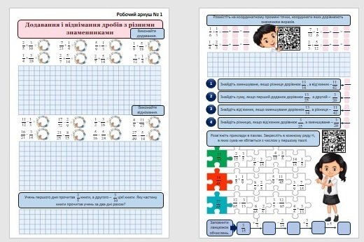 Робочі аркуші з математики для учнів 6 класу з теми “Додавання дробів мішаних чисел (дробів з різ...