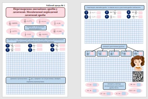 Матеріали «Робочі аркуші з математики для учнів 6 класу з теми “Перетворення звичайних дробів у десяткові. Нескінченні періодичні десяткові дроби”» будуть надіслані в електронному вигляді на вашу поштову скриньку одразу після оплати.