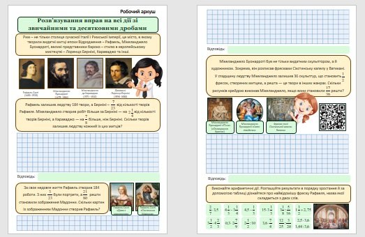 Матеріали «Робочі аркуші з математики для учнів 6 класу з теми Розв’язування вправ на всі дії зі звичайними те десятковими дробами”» будуть надіслані в електронному вигляді на вашу поштову скриньку одразу після оплати.