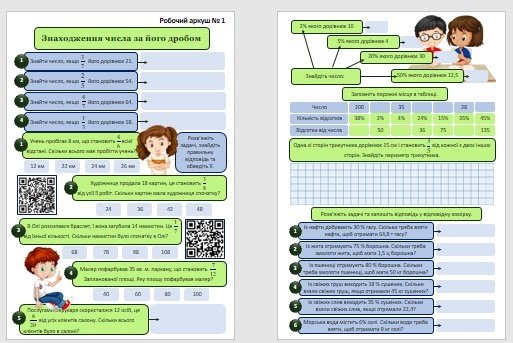 Робочі аркуші з математики для учнів 6 класу з теми “Основна властивість дробу. Скорочення дробів...