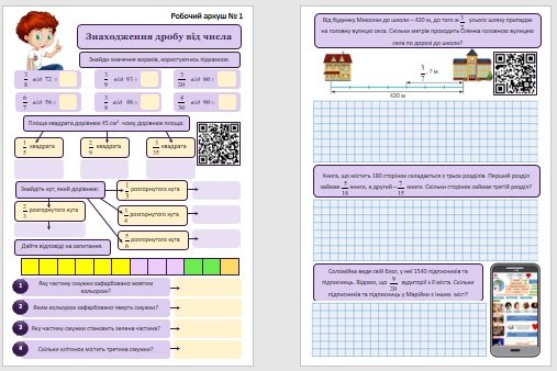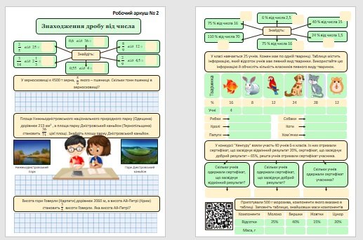 Робочі аркуші з математики для учнів 6 класу з теми “Знаходження числа за його дробом”