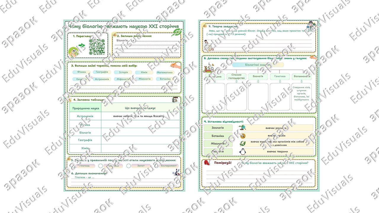 Як купити матеріал «Робочий аркуш до теми “Чому біологію вважають наукою ХХІ сторіччя”. Біологія 7 клас НУШ»?