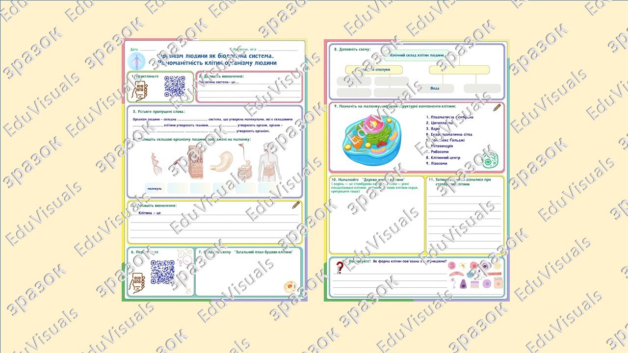 Матеріали «Робочий аркуш до теми “Організм людини як біологічна система. Різноманітність клітин організму людини”» будуть надіслані в електронному вигляді на вашу поштову скриньку одразу після оплати.