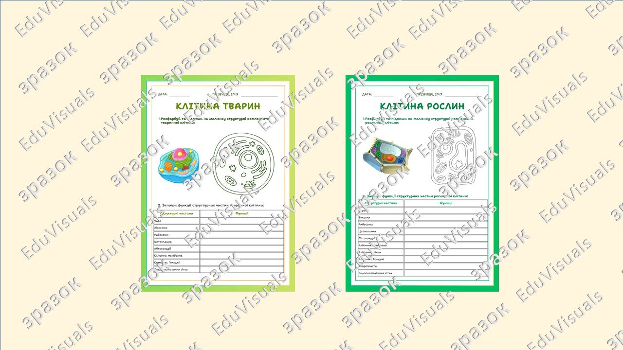Робочий аркуш з біології “Будова рослинної і тваринної клітин”.