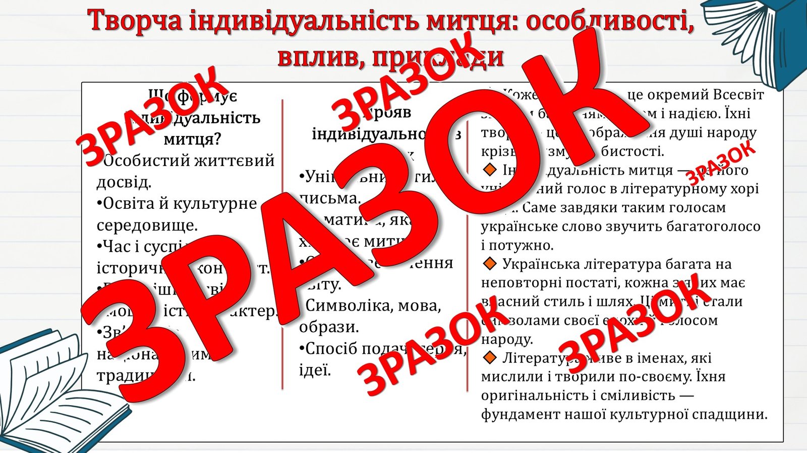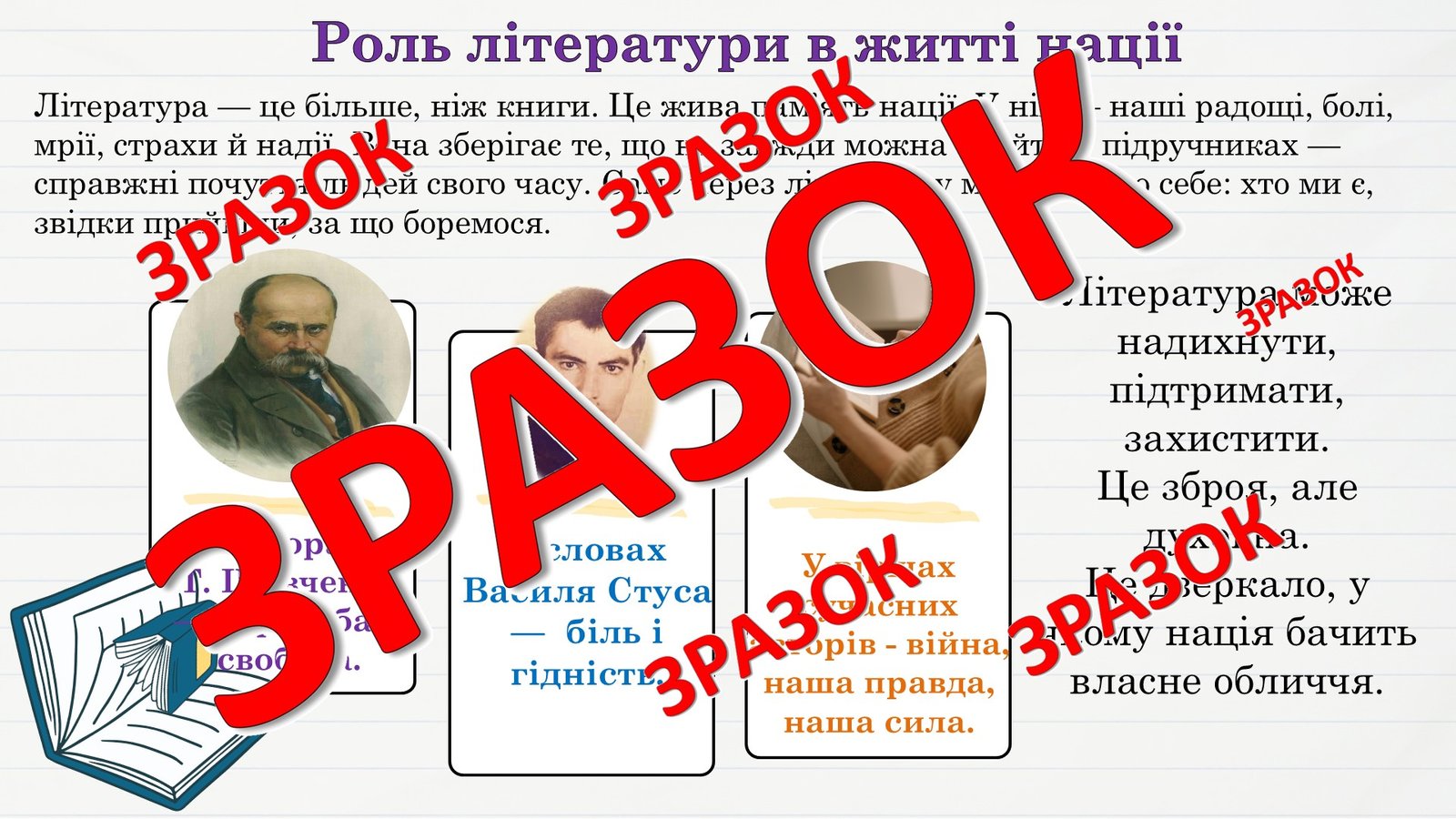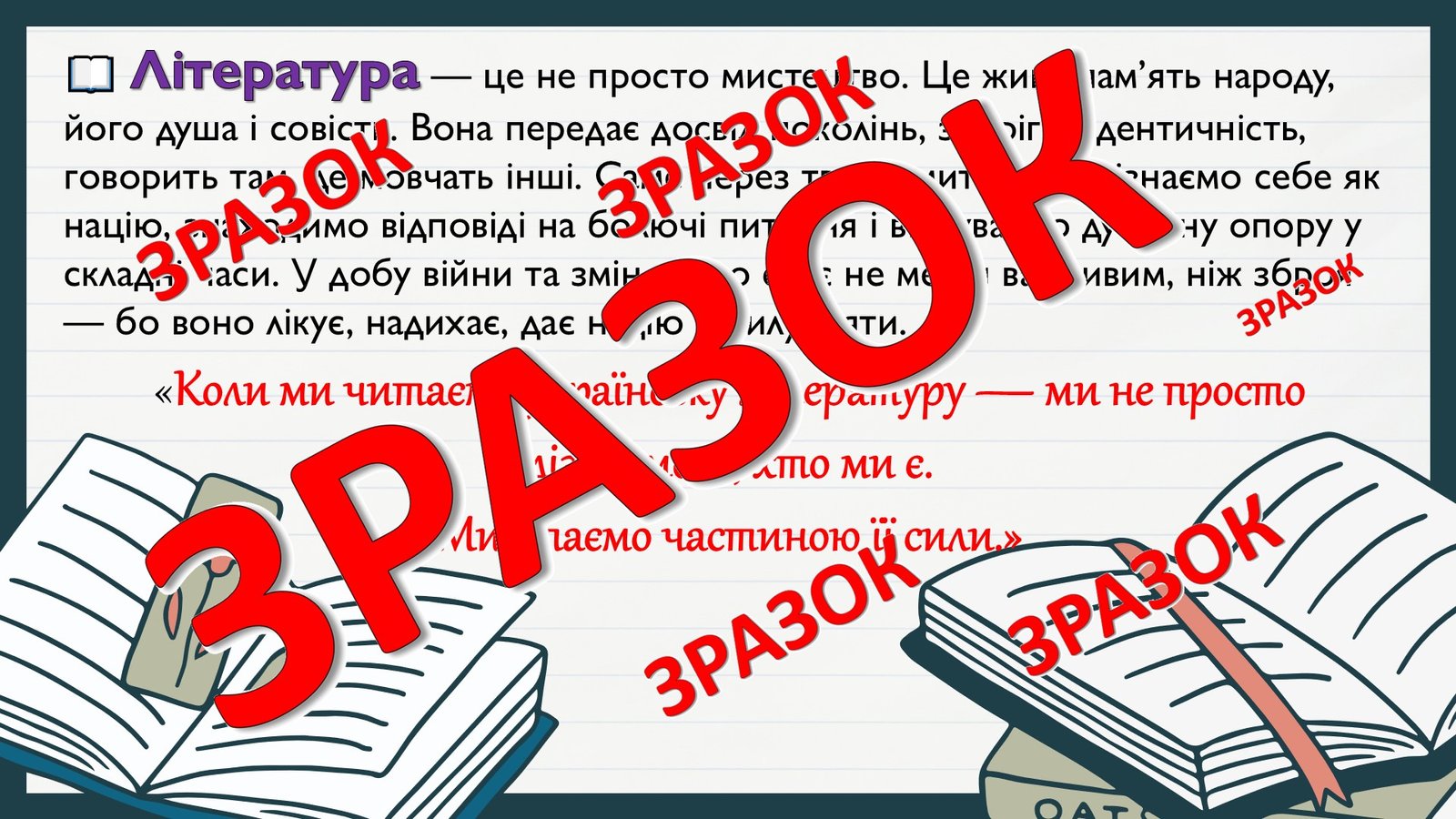 Презентація + конспект уроку .«Роль і місце літератури в житті нації. Розвиток літератури. Творча індивідуальність митця» — це не просто навчальний матеріал, а емоційна подорож у світ українського слова. У ній показано, як література супроводжує націю протягом століть — від перших літописів до сучасної поезії воєнного часу. Кожна епоха, кожен автор — це відбиток духу народу, його боротьби, болю, надії.