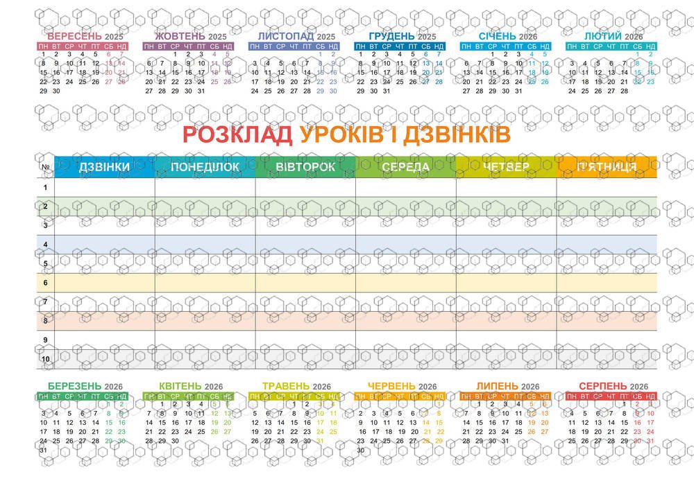 Календар учителя 2025–2026 — зручний помічник для організованого навчального року! У комплекті: ✅ стильний календар на весь навчальний рік ✅ розклад уроків і дзвінків ✅ план на день для записів і нотаток