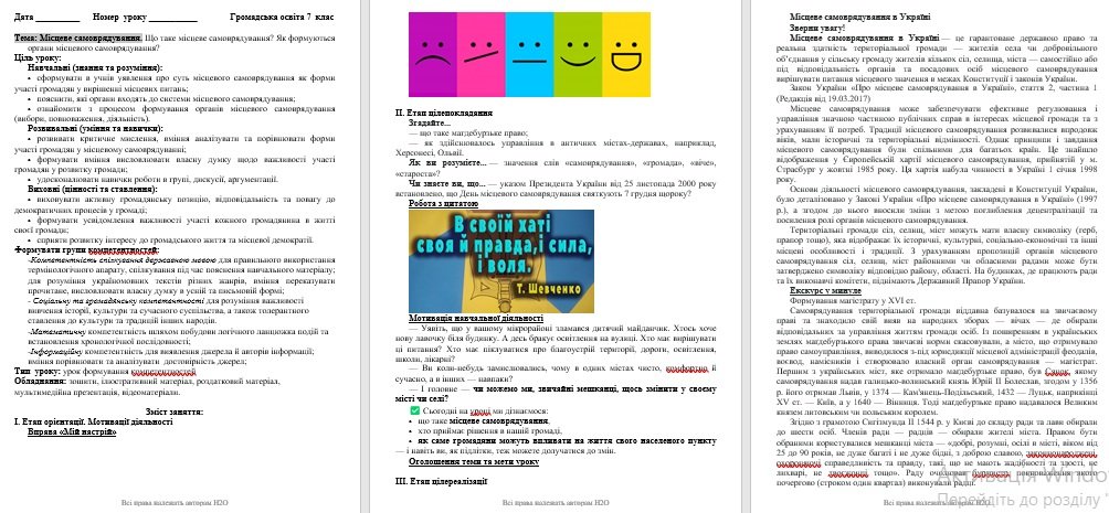Розробка урока Громадська освіта 7 клас. Тема: Місцеве самоврядування.