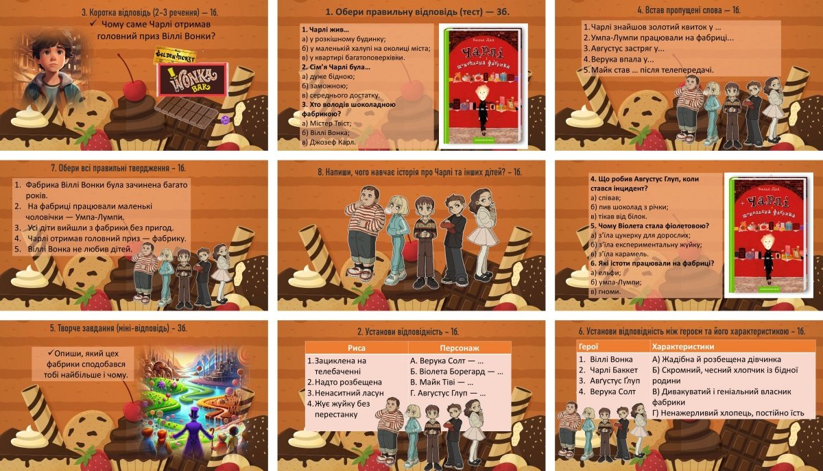 Читання мовчки уривку повісті-казки «Чарлі і шоколадна фабрика» Роальда Дала, 5 клас (з відповідями)