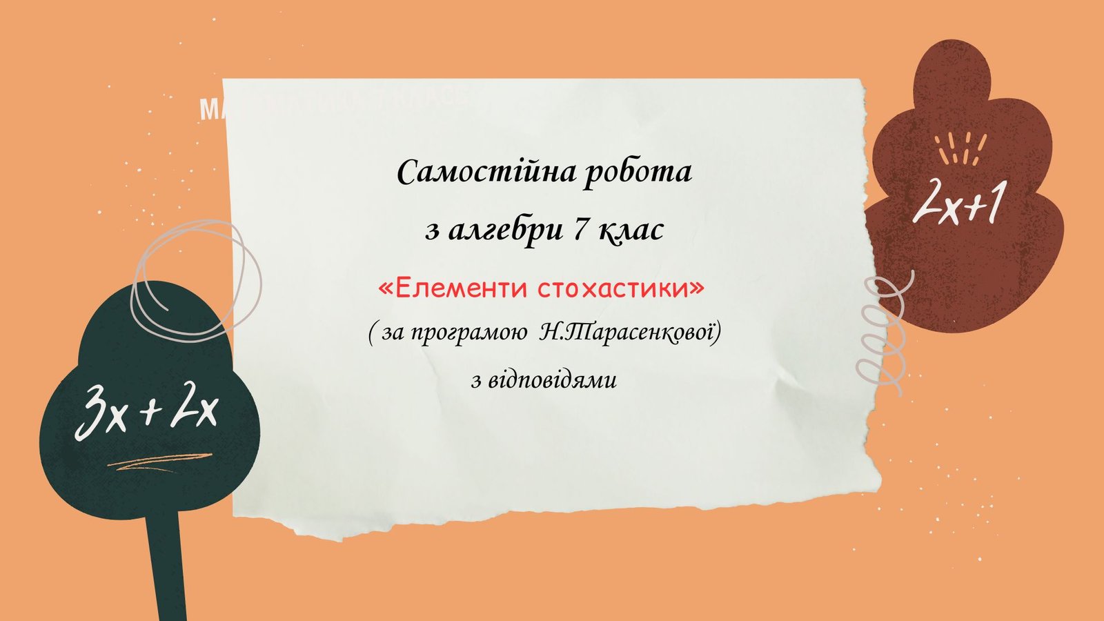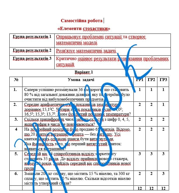 Самостійна робота за групами результатів з алгебри 7 клас «Елементи стохастики» з відповідями за програмою Н.Тарасенкової
