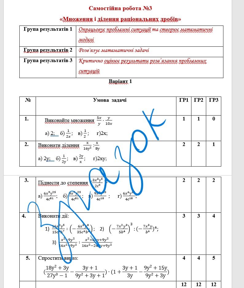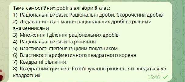Самостійні роботи 8 клас НУШ