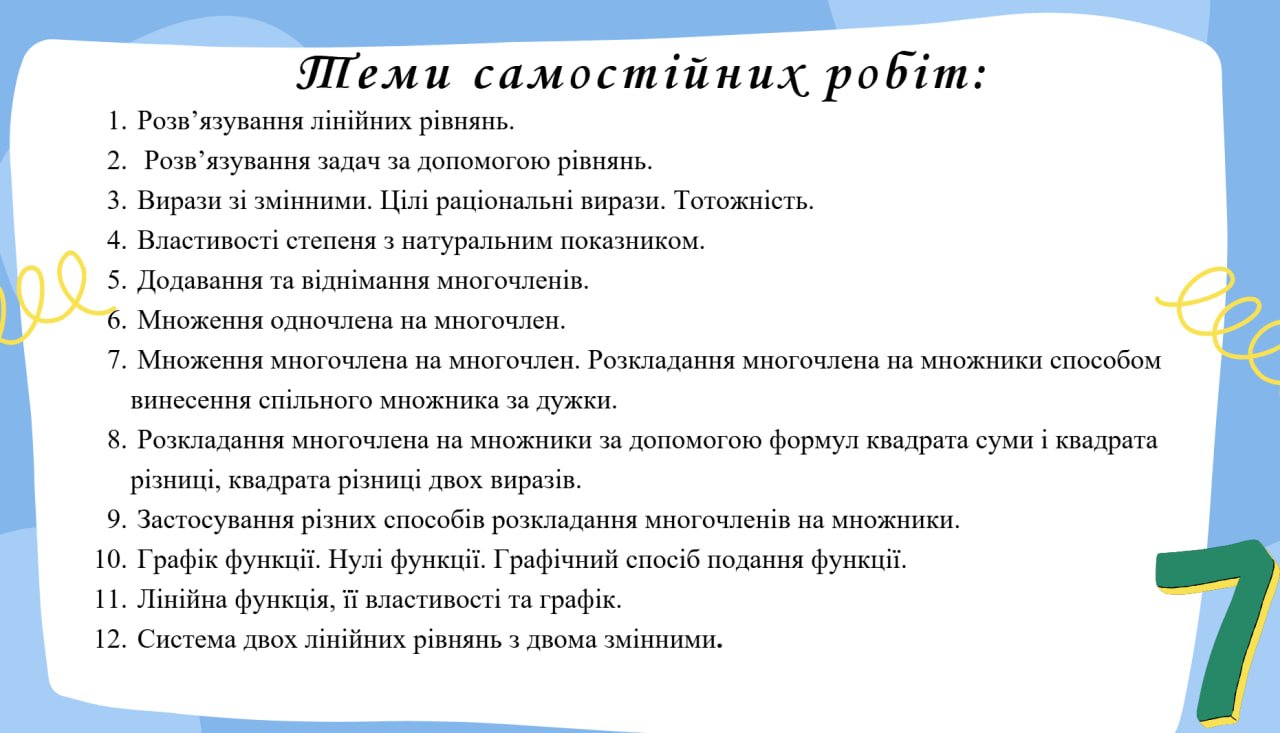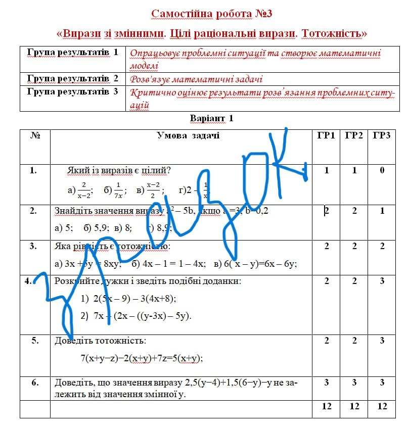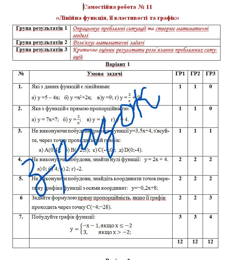 Комплексна контрольна робота за рік з алгебри в 7 класі з групами результатів (за програмою О. Іс...