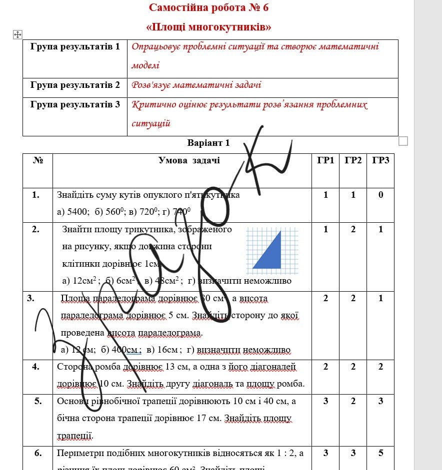 Комплексна контрольна робота за рік з геометрії в 7 класі з групами результатів (за програмою О. ...