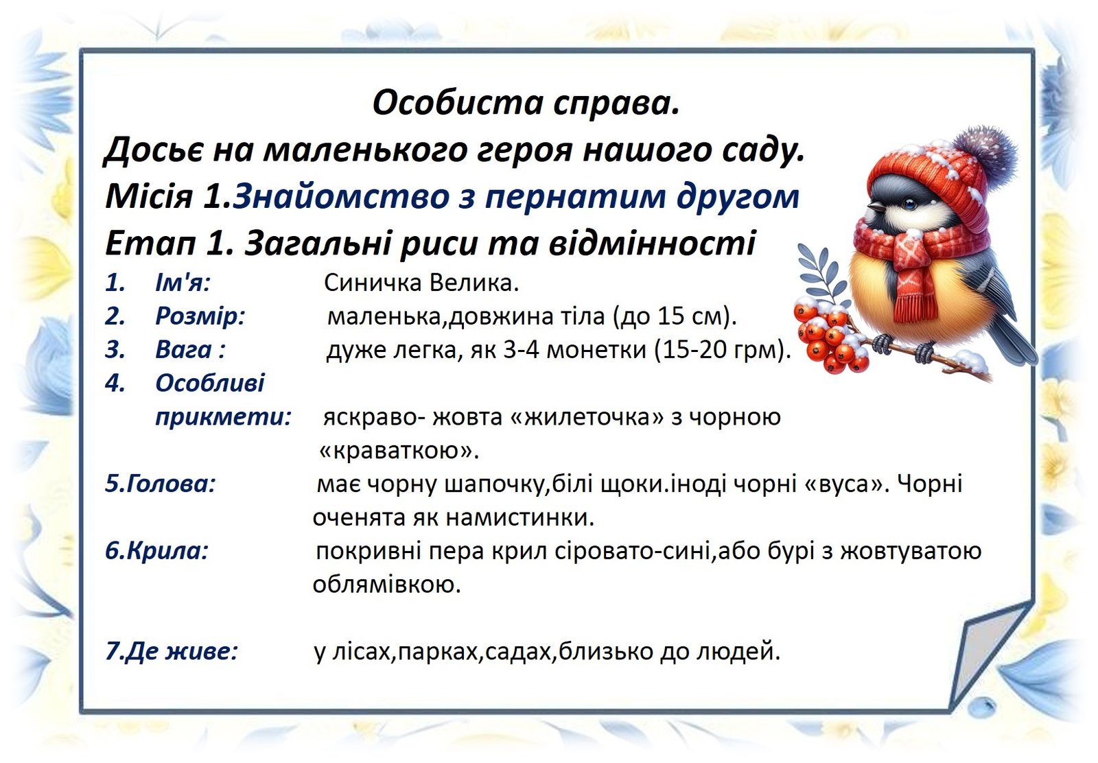 «Секретне досьє №001 Агент. «Жовтогрудка»» (Синиця Велика)