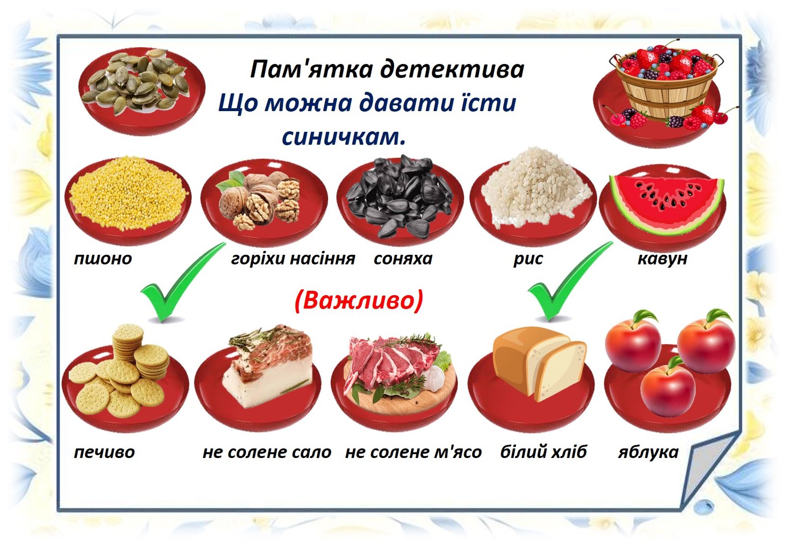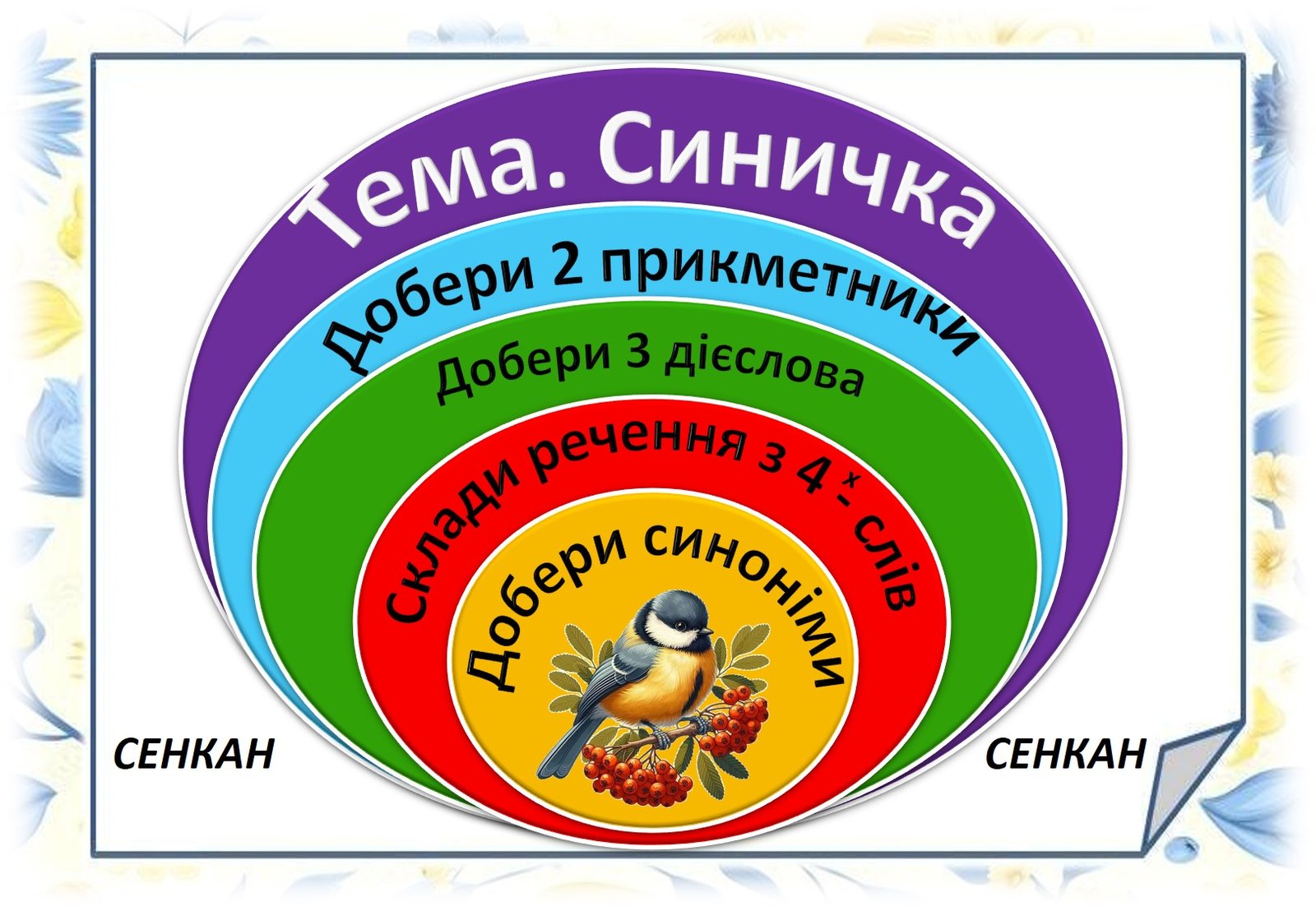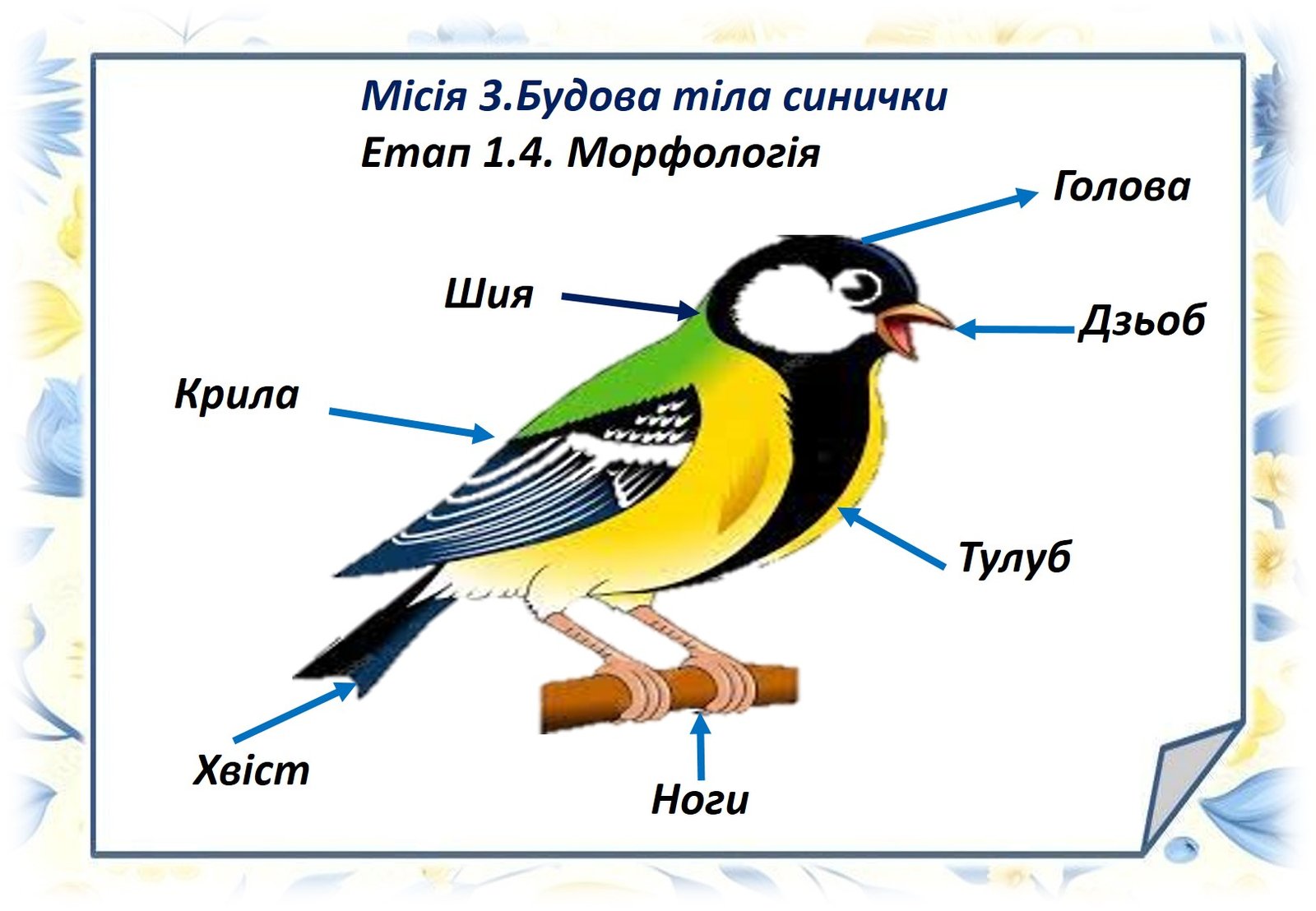 Мета: розширити знання дітей про пташку велику синичку, відкривати таємниці навколишнього світу. Розвивати творчі здібності дітей Виховувати турботливе ставлення до птахів; вчити оберігати і захищати птахів.