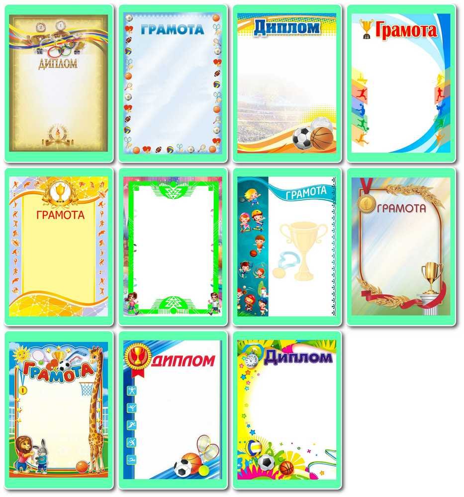 🎖️ Дипломи та грамоти — 11 оригінальних шаблонів для заохочення спортсменів і маленьких чемпіонів.