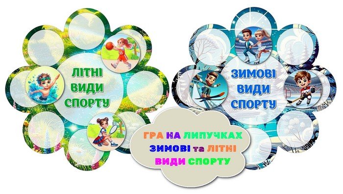 ⚽ Літні та зимові види спорту — аплікація або гра на липучках (діти вивчають, розрізняють і закріплюють знання у грі).