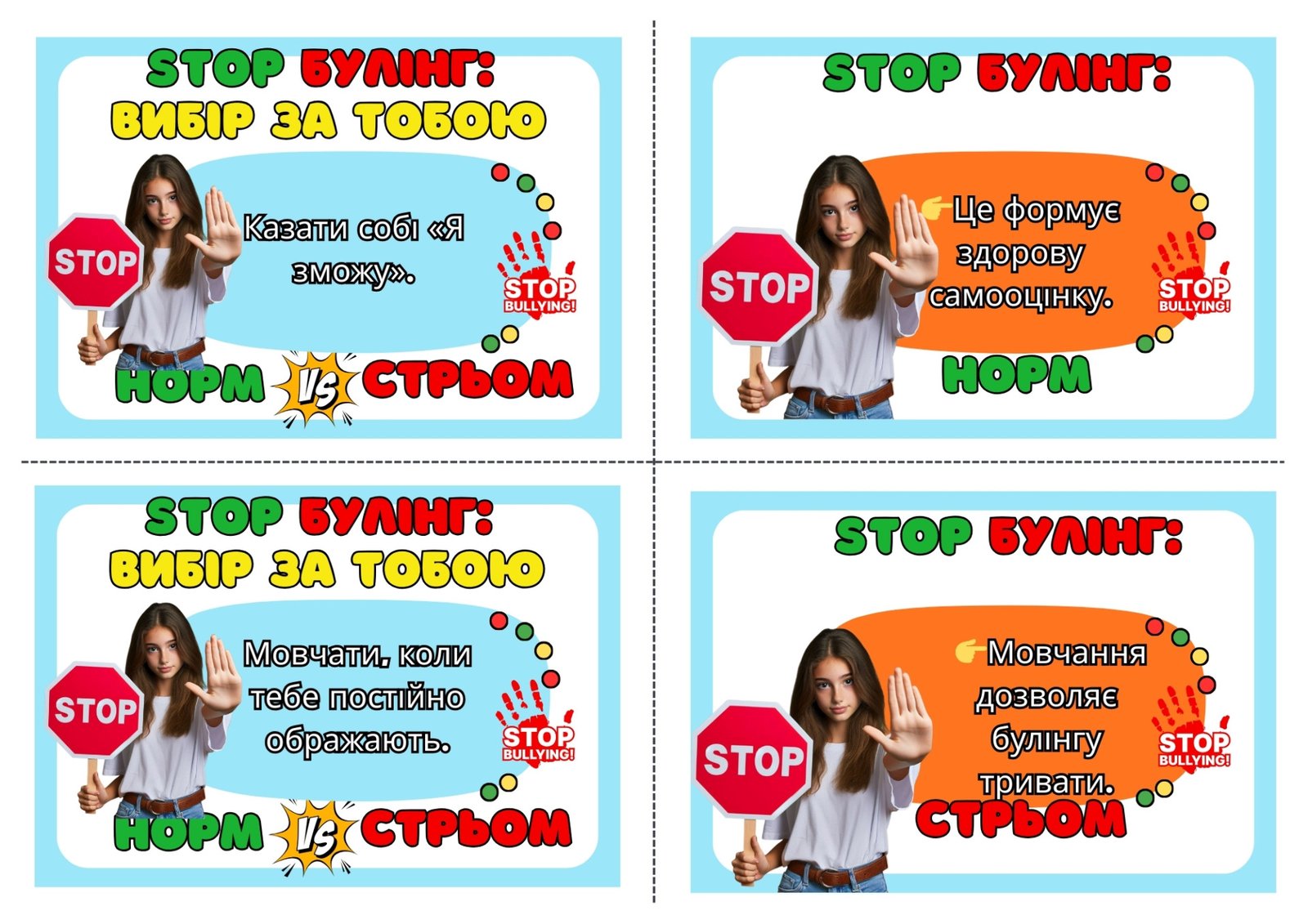 Матеріали «🚫 STOP БУЛІНГ: ВИБІР ЗА ТОБОЮ! 🚫 ✨ 100 карток НОРМ чи стрьом? ✨» будуть надіслані в електронному вигляді на вашу поштову скриньку одразу після оплати.
