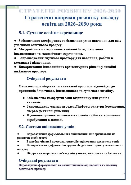 V. ✅СТРАТЕГІЧНІ НАПРЯМИ РОЗВИТКУ ЗАКЛАДУ ОСВІТИ НА 2025-2030 РОКИ