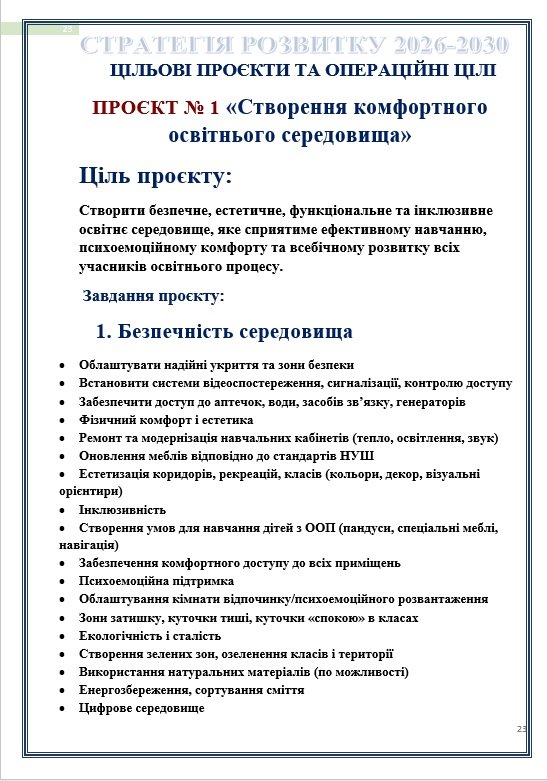 6.1. ПРОЄКТ № 1 «СТВОРЕННЯ КОМФОРТНОГО ОСВІТНЬОГО СЕРЕДОВИЩА»